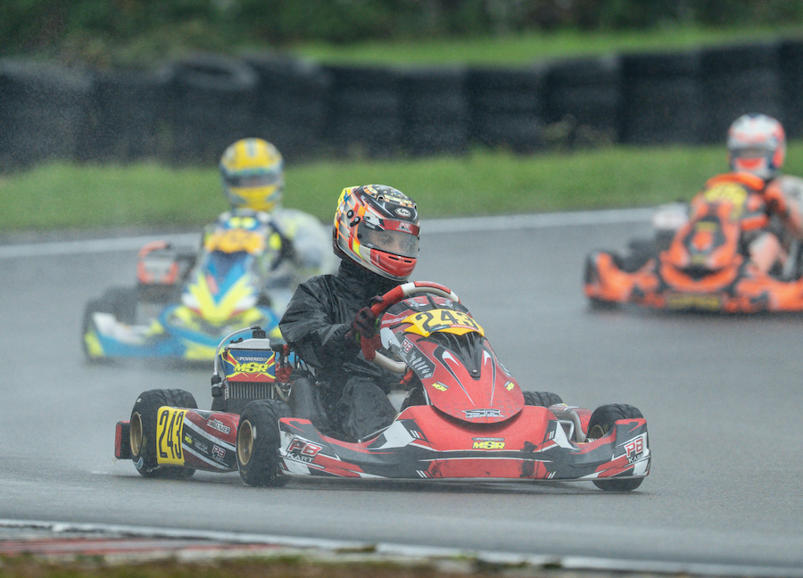 Toujours parmi les plus rapides, Mathis remportait deux manches et remontait P3 le samedi soir. Hélas, il se faisait malmener en super manche et chutait 8e sur la grille de la finale. Il était revenu 4e, avant de se faire heurter par l’arrière et de perdre 4 places. Heureusement, il sauvait la 3e place finale au général de la NSK.