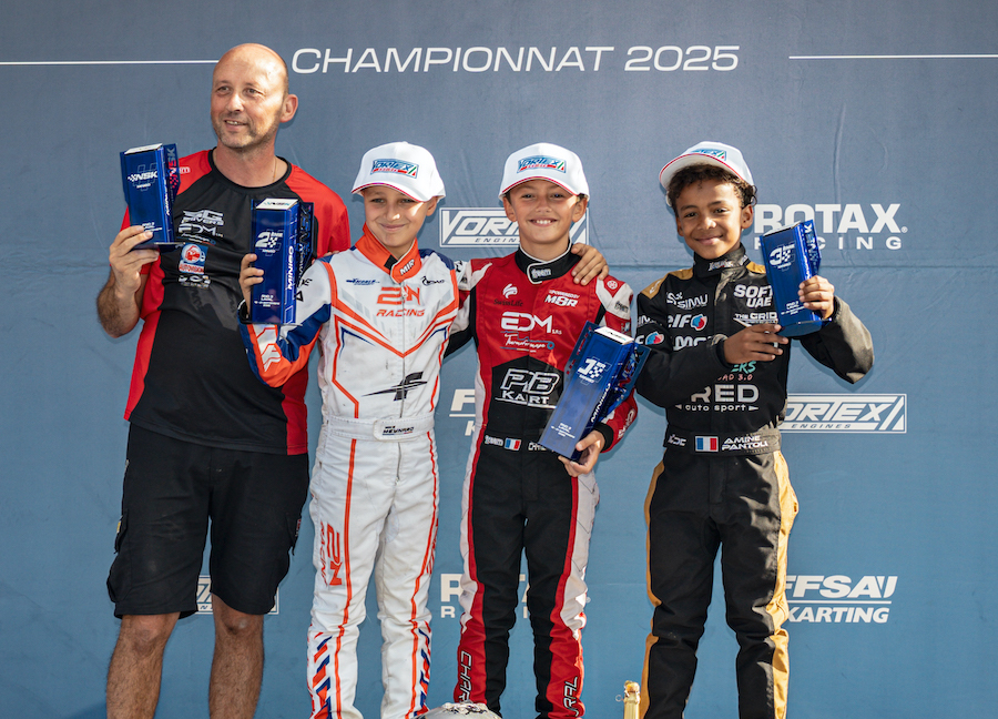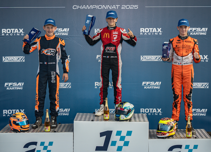 Respectivement champions de France en Mini 60 et Nationale avec des moteurs tirés au sort, Charles Ural et Gabriel Canal ont cette fois gagné avec la motorisation MSR. La catégorie Rotax Senior n’a pas été en reste avec la 3e position de Vivien Guyonnet en finale et une autre 3e marche du podium avec Mathis Parlant au classement général.